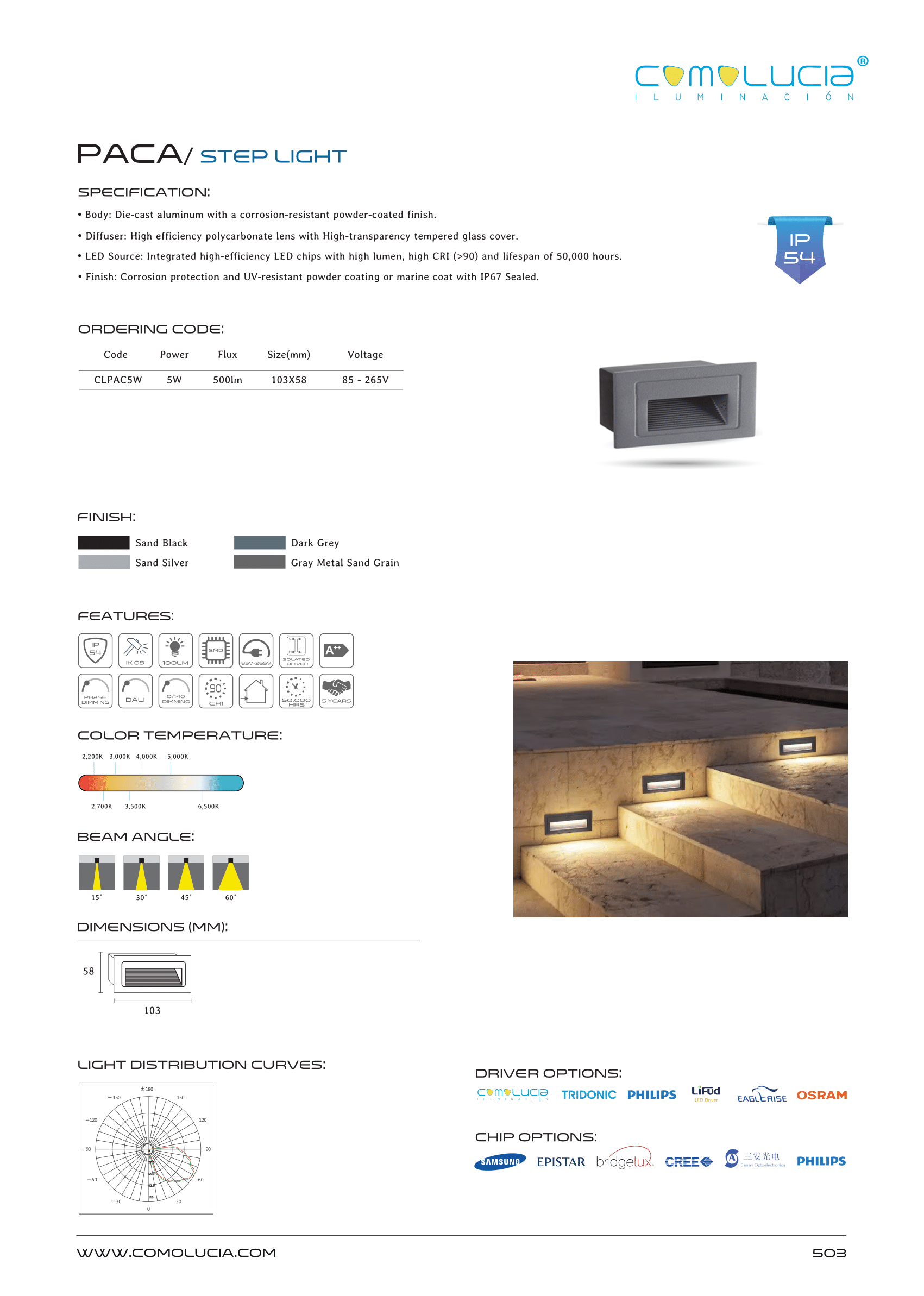 - LED Source: Integrated high-efficiency LED chips with high lumen, high CRI (>90) and lifespan of 50,000 hours.