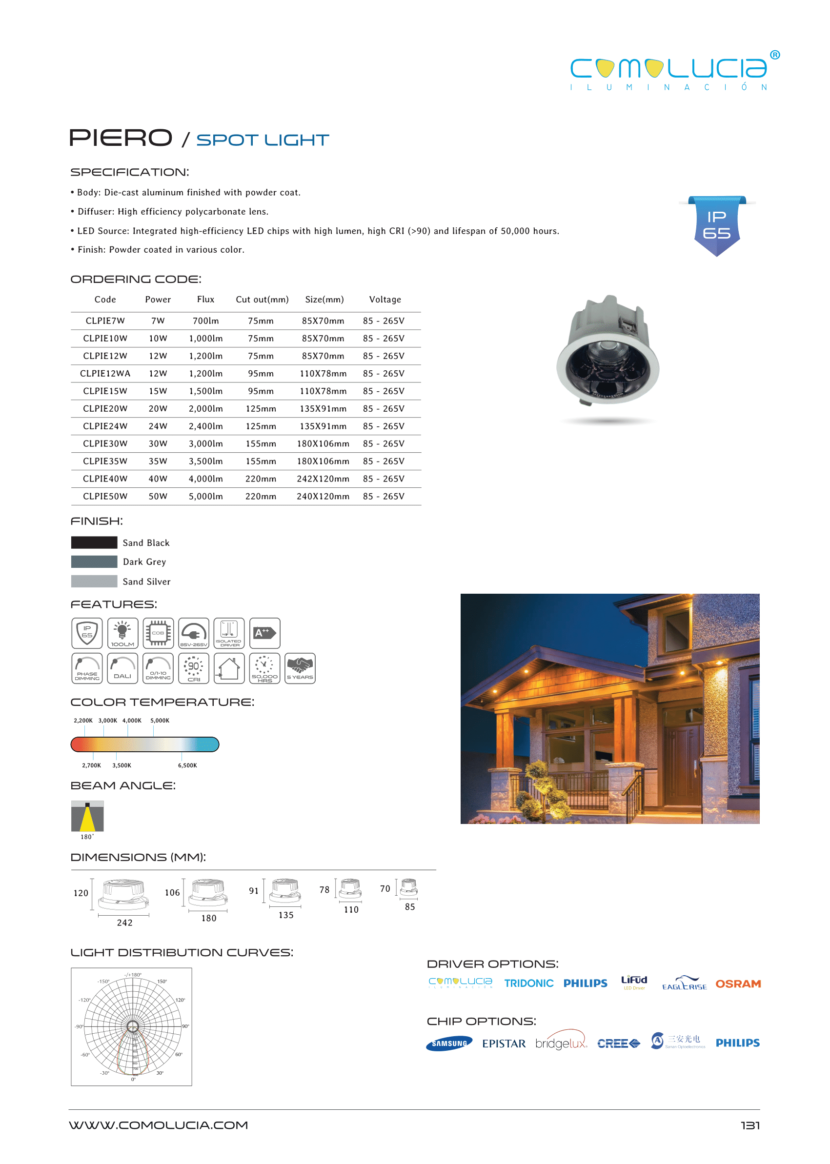 - LED Source: Integrated high-efficiency LED chips with high lumen, high CRI (>90) and lifespan of 50,000 hours.