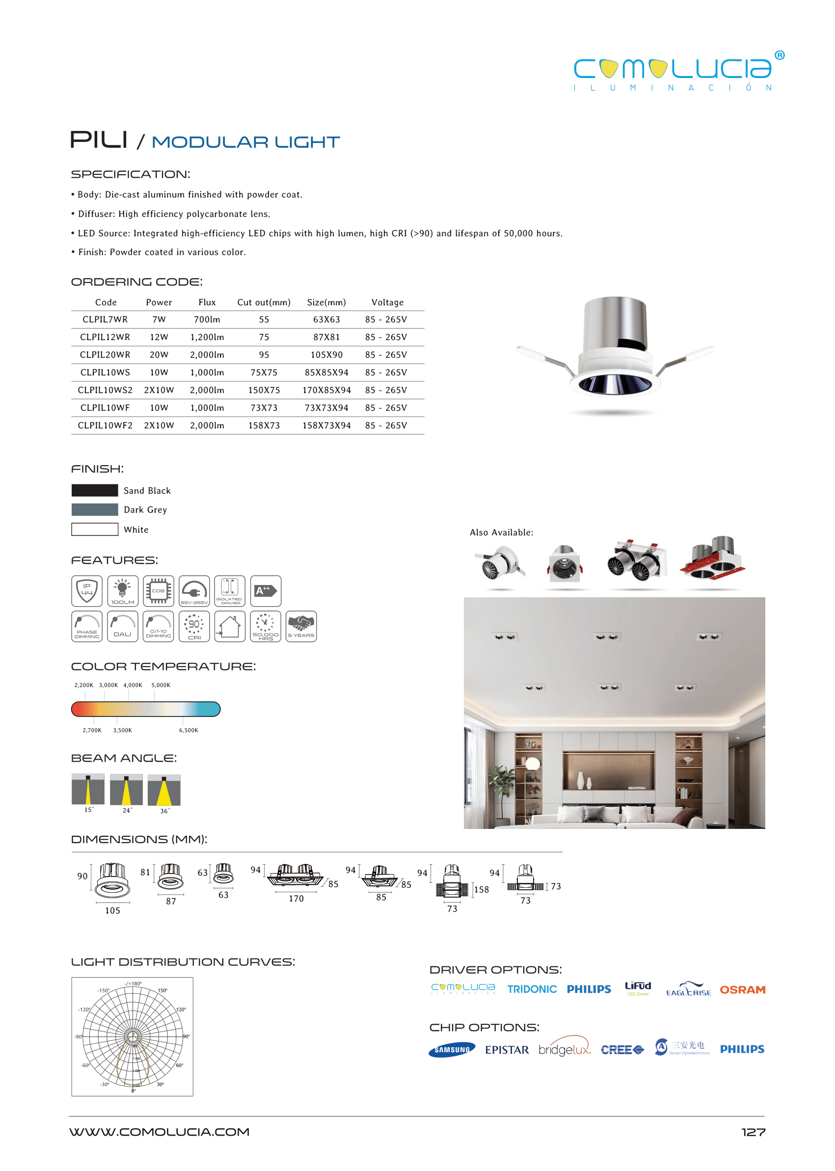 - LED Source: Integrated high-efficiency LED chips with high lumen, high CRI (>90) and lifespan of 50,000 hours.