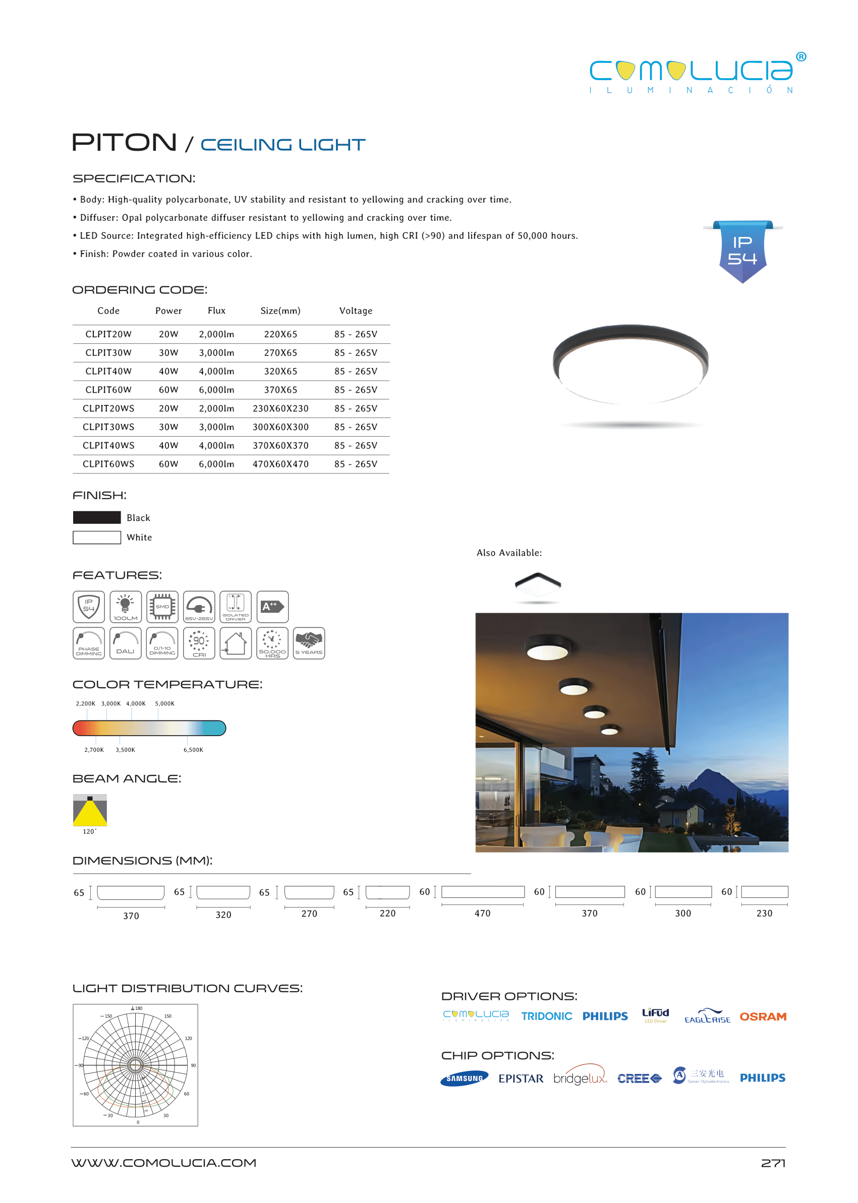 - LED Source: Integrated high-efficiency LED chips with high lumen, high CRI (>90) and lifespan of 50,000 hours.