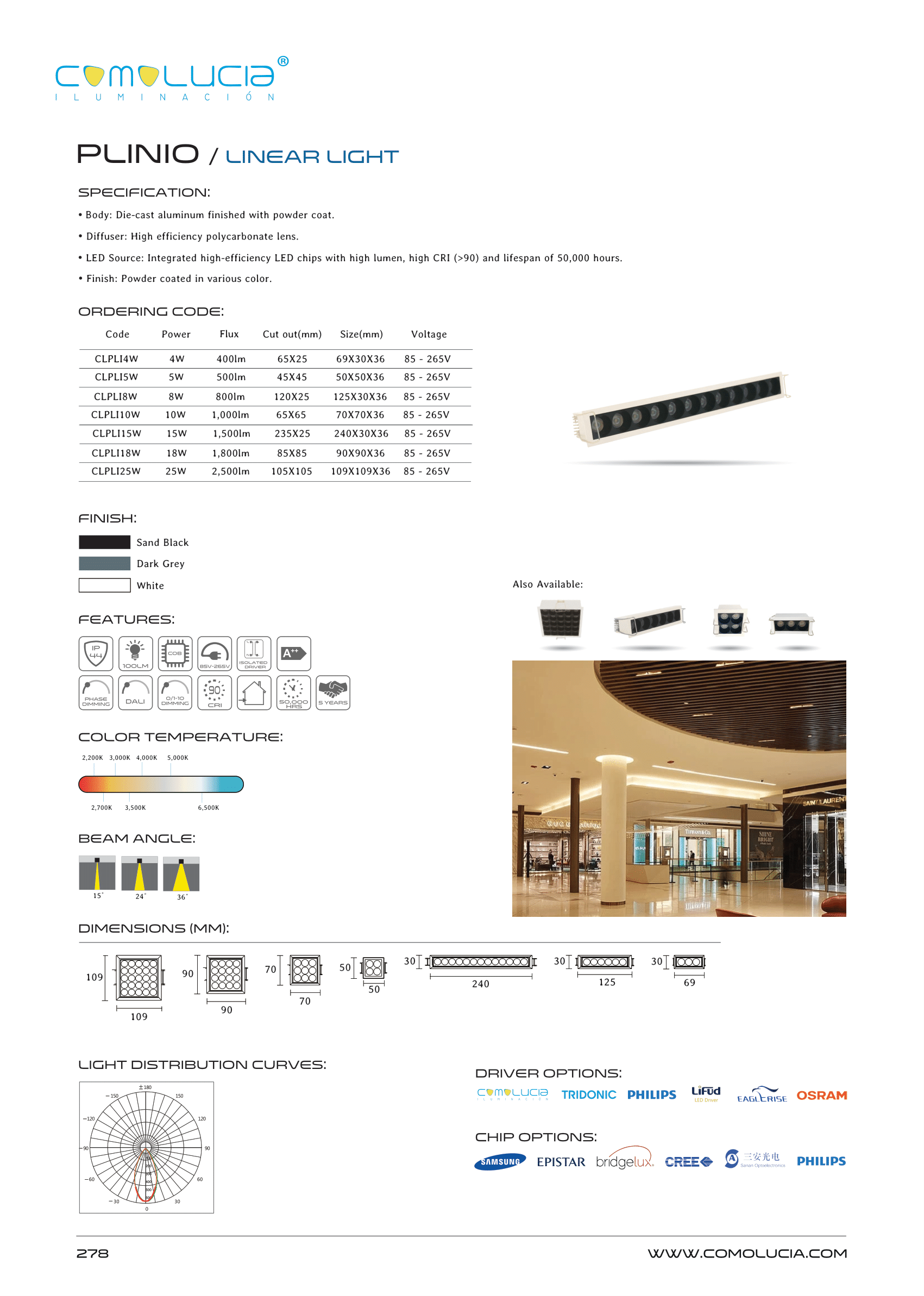 - LED Source: Integrated high-efficiency LED chips with high lumen, high CRI (>90) and lifespan of 50,000 hours.