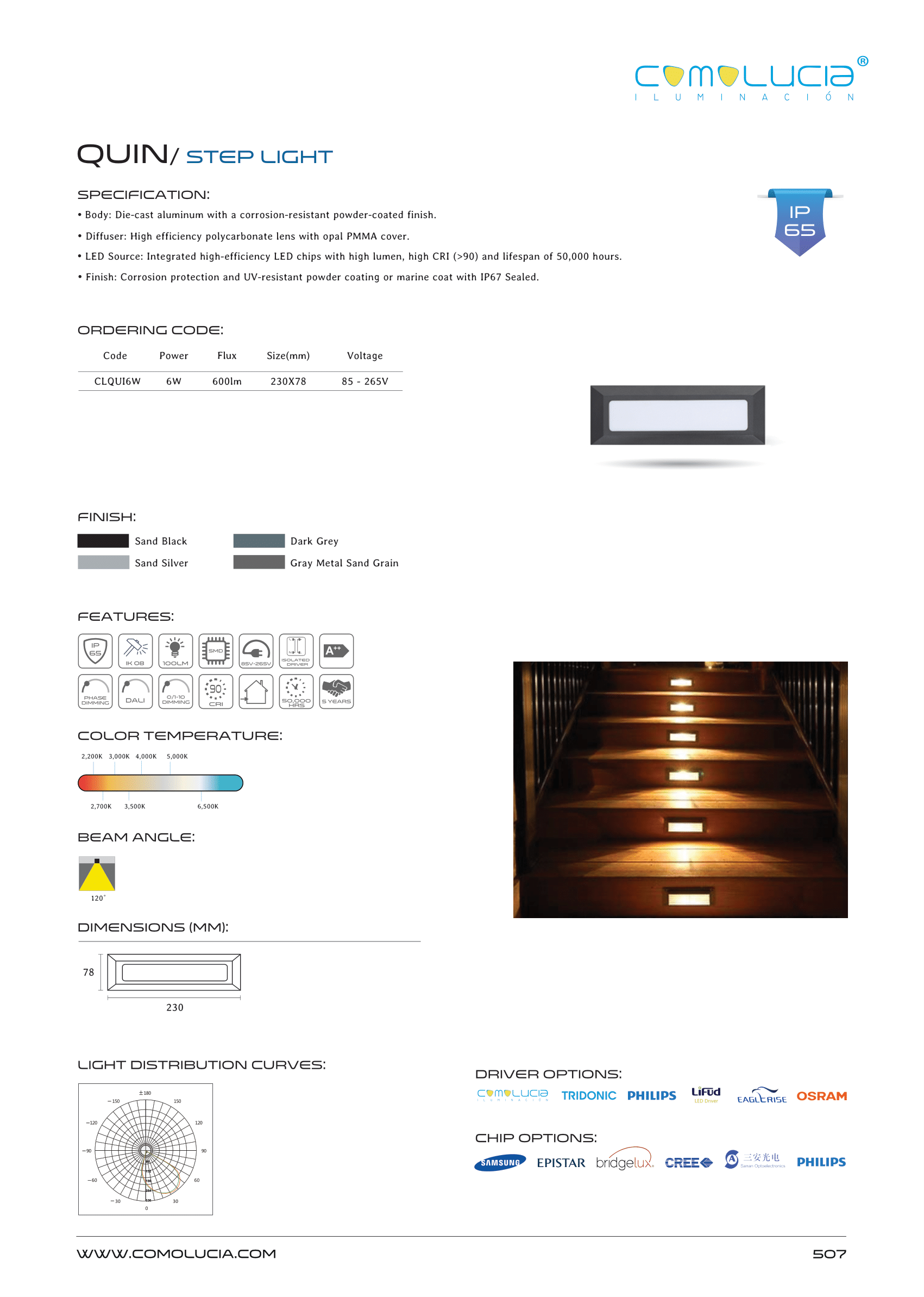 - LED Source: Integrated high-efficiency LED chips with high lumen, high CRI (>90) and lifespan of 50,000 hours.
