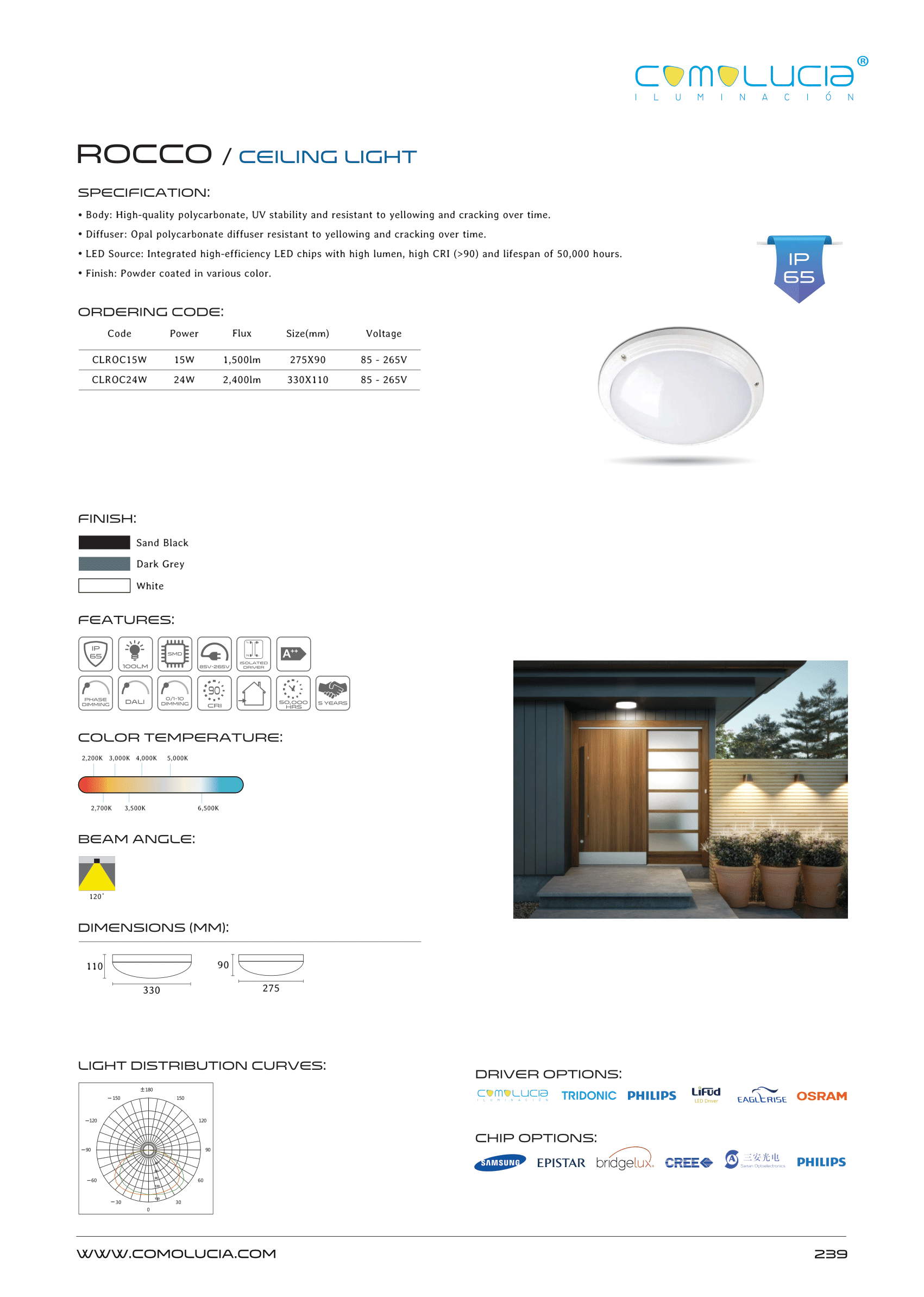 - LED Source: Integrated high-efficiency LED chips with high lumen, high CRI (>90) and lifespan of 50,000 hours.
