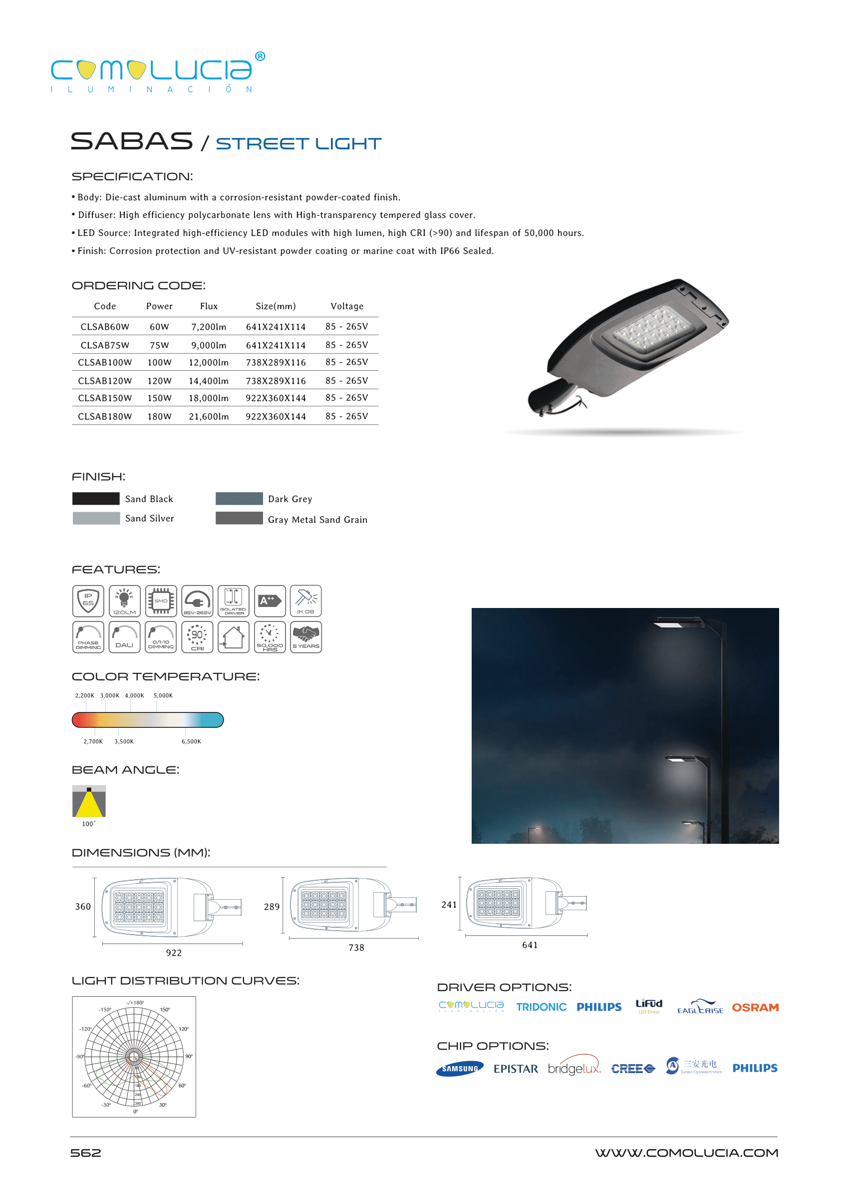 - LED Source: Integrated high-efficiency LED modules with high lumen, high CRI (>90) and lifespan of 50,000 hours.