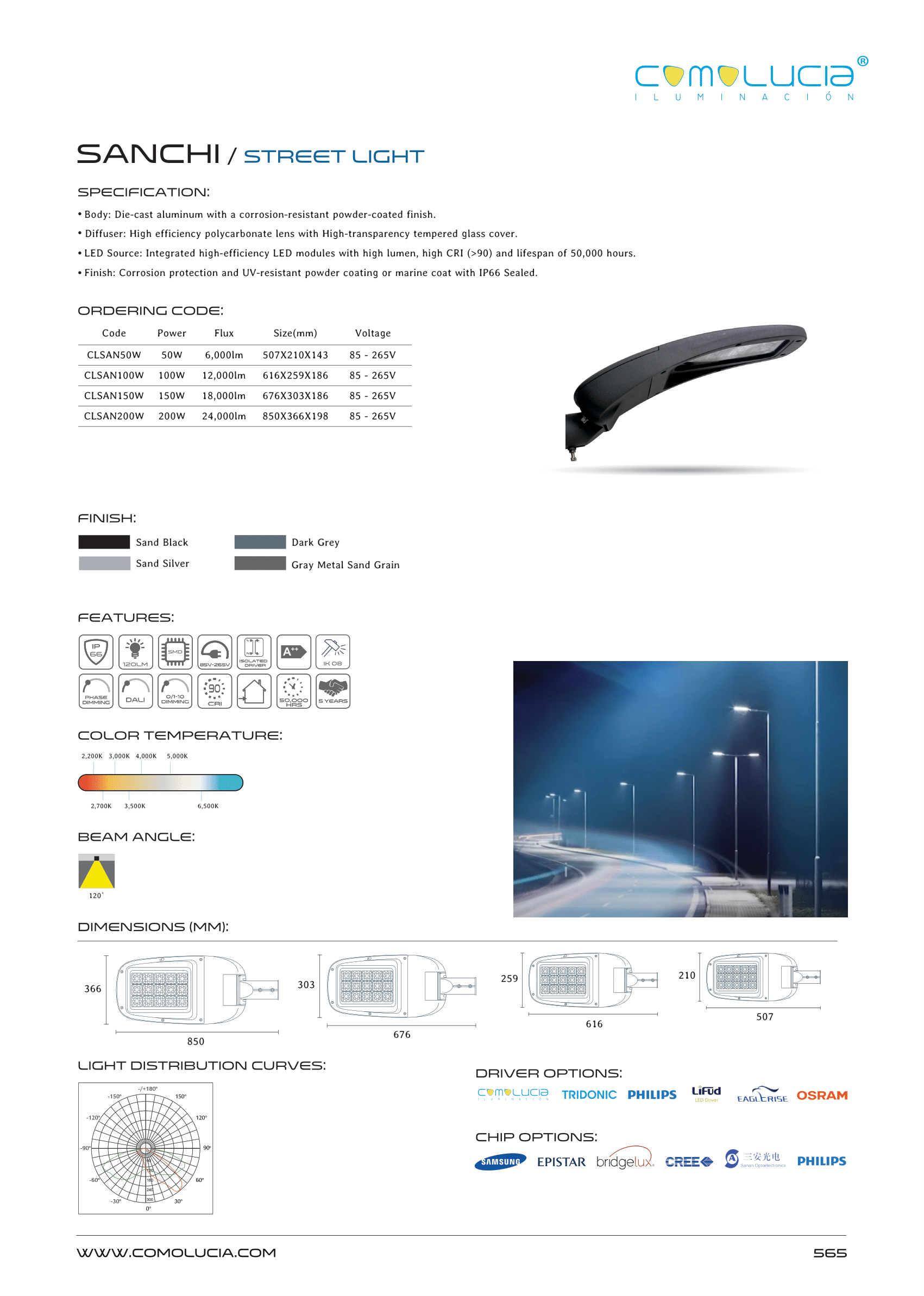 - LED Source: Integrated high-efficiency LED modules with high lumen, high CRI (>90) and lifespan of 50,000 hours.