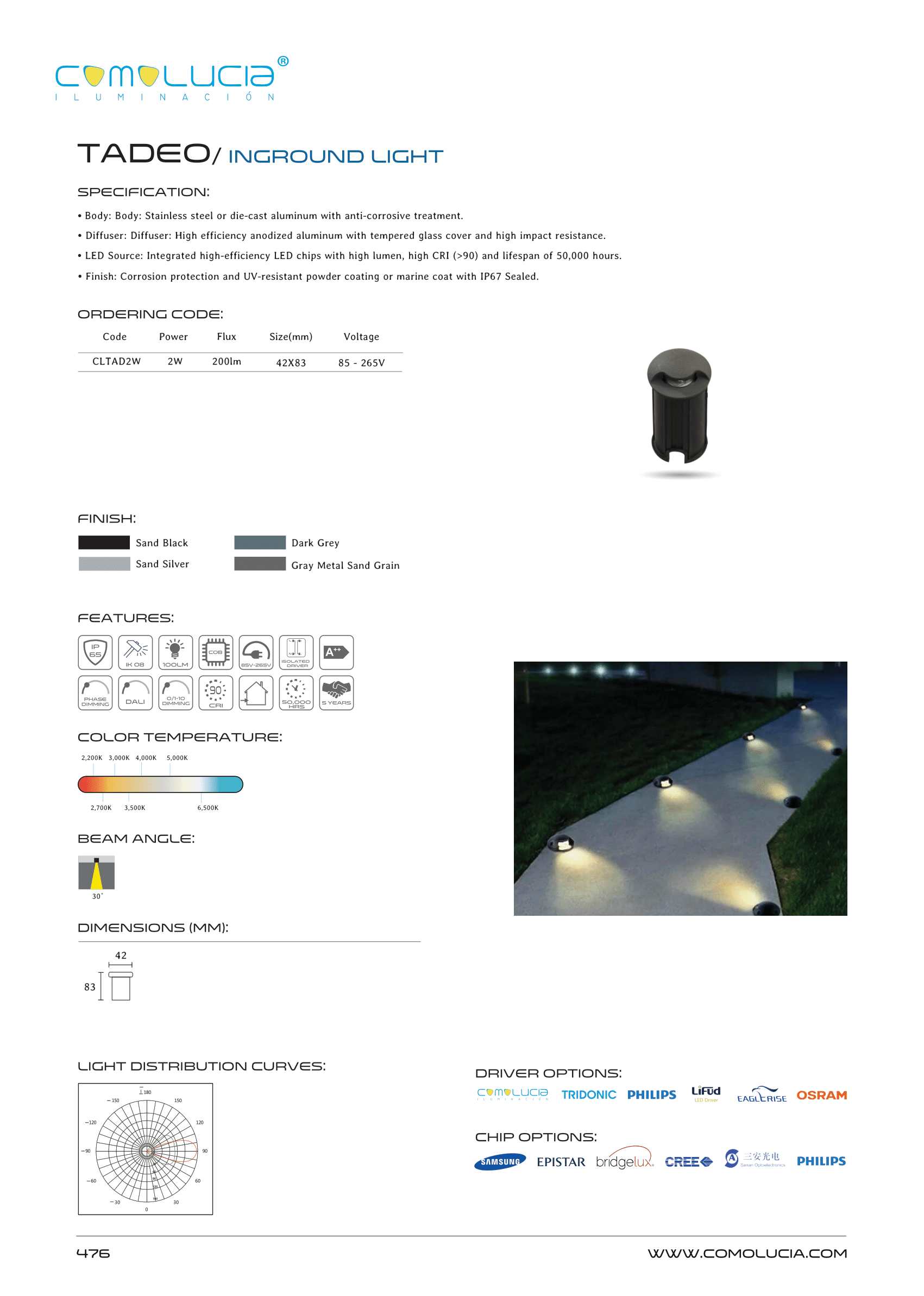 - Diffuser: High efficiency polycarbonate lens with High-transparency tempered glass cover.