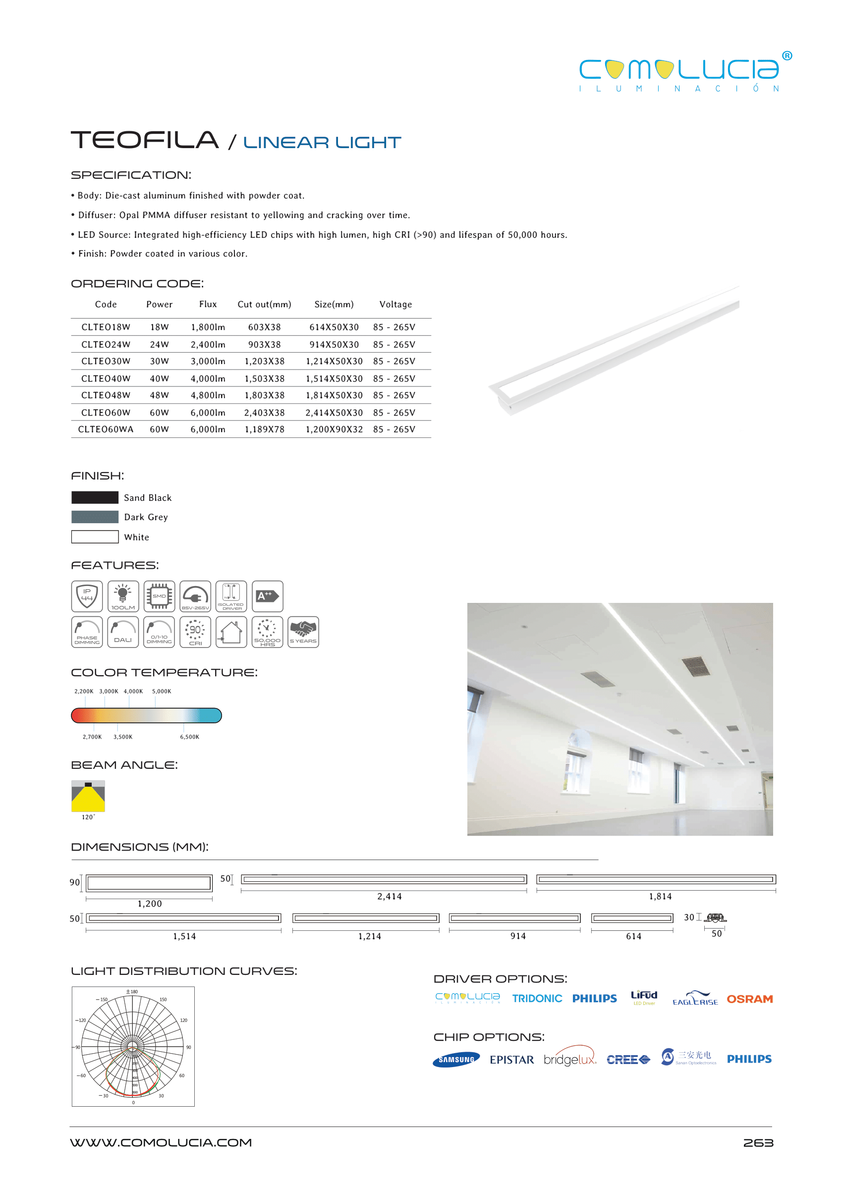 - LED Source: Integrated high-efficiency LED chips with high lumen, high CRI (>90) and lifespan of 50,000 hours.