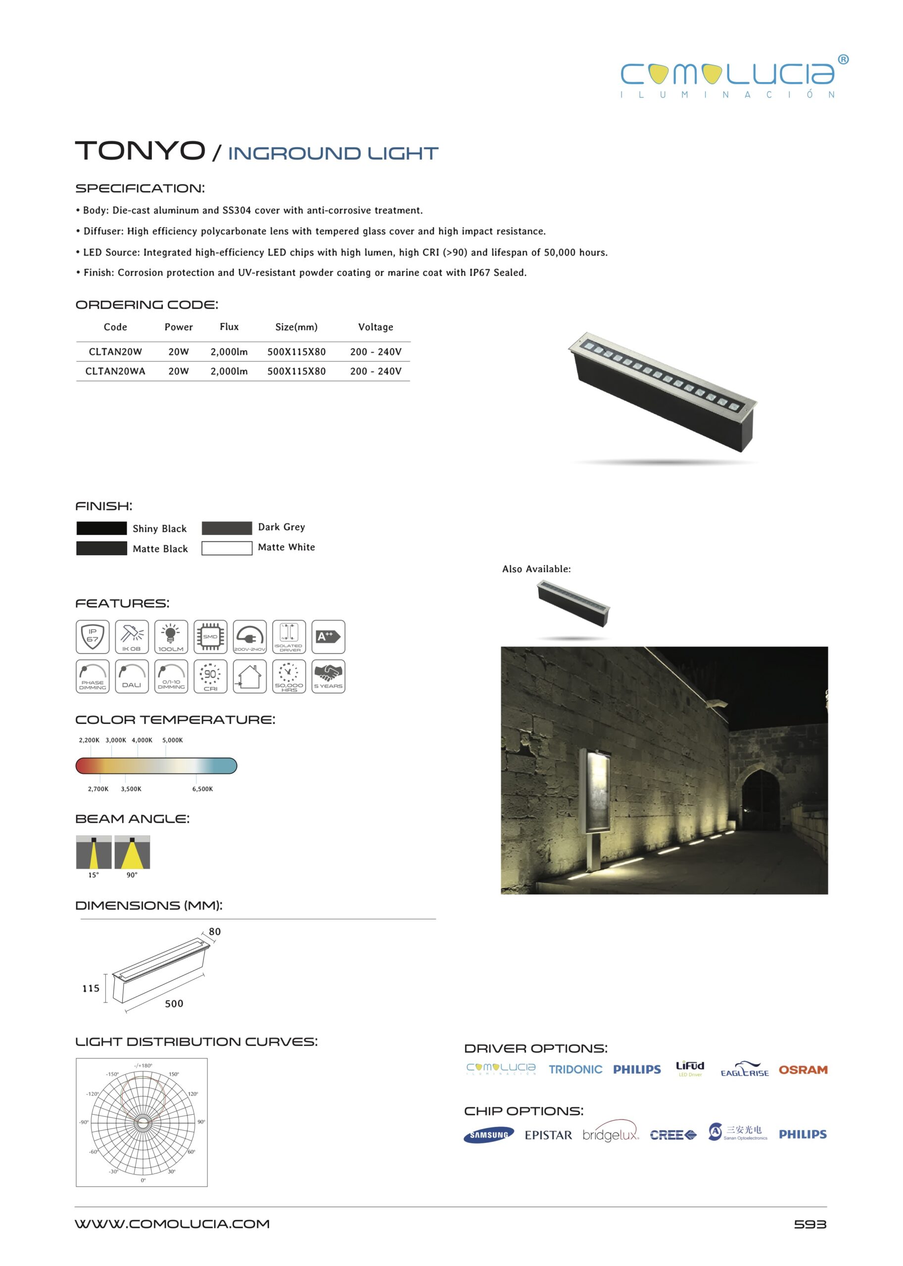 - LED Source: Integrated high-efficiency LED chips with high lumen, high CRI (>90) and lifespan of 50,000 hours.