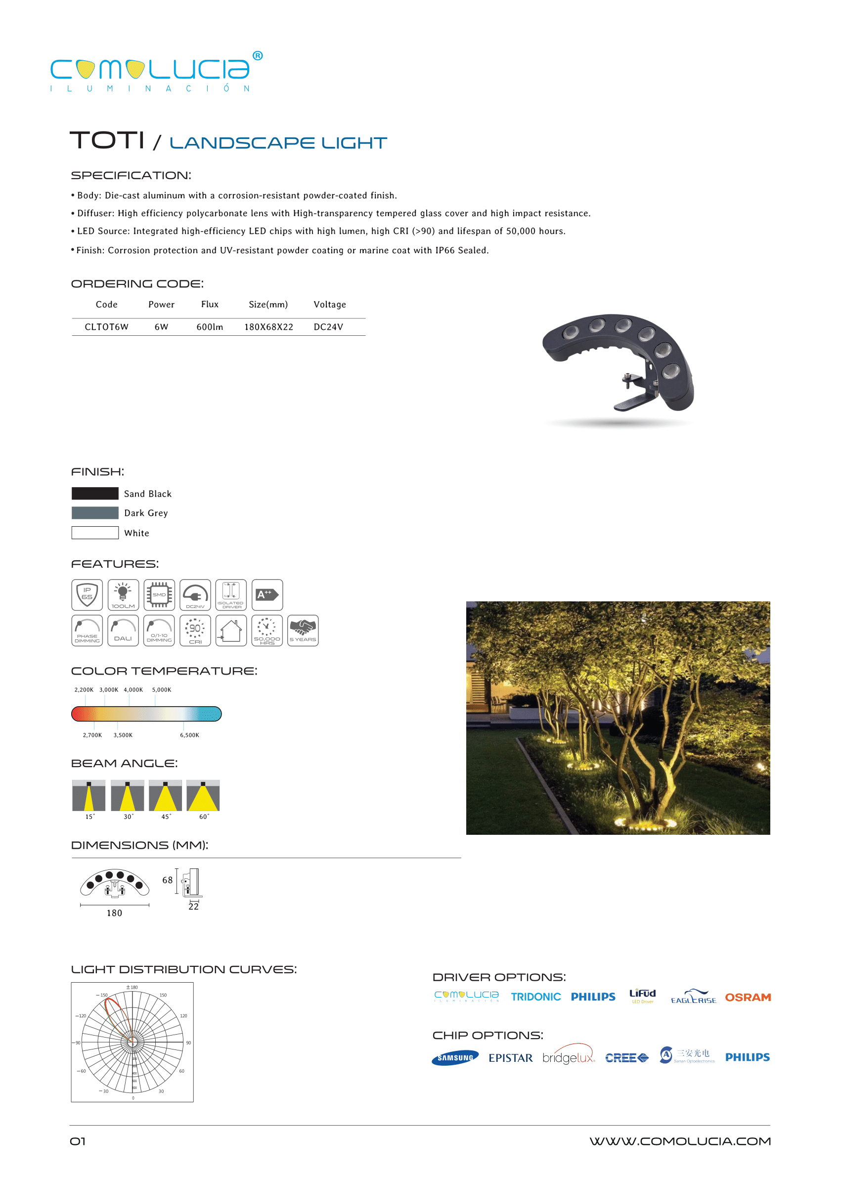 - LED Source: Integrated high-efficiency LED chips with high lumen, high CRI (>90) and lifespan of 50,000 hours.