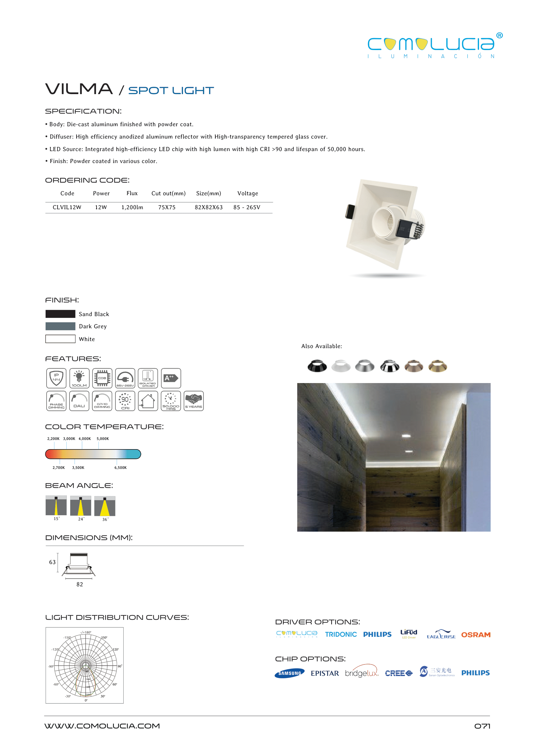 - LED Source: Integrated high-efficiency LED chip with high lumen with high CRI >90 and lifespan of 50,000 hours.