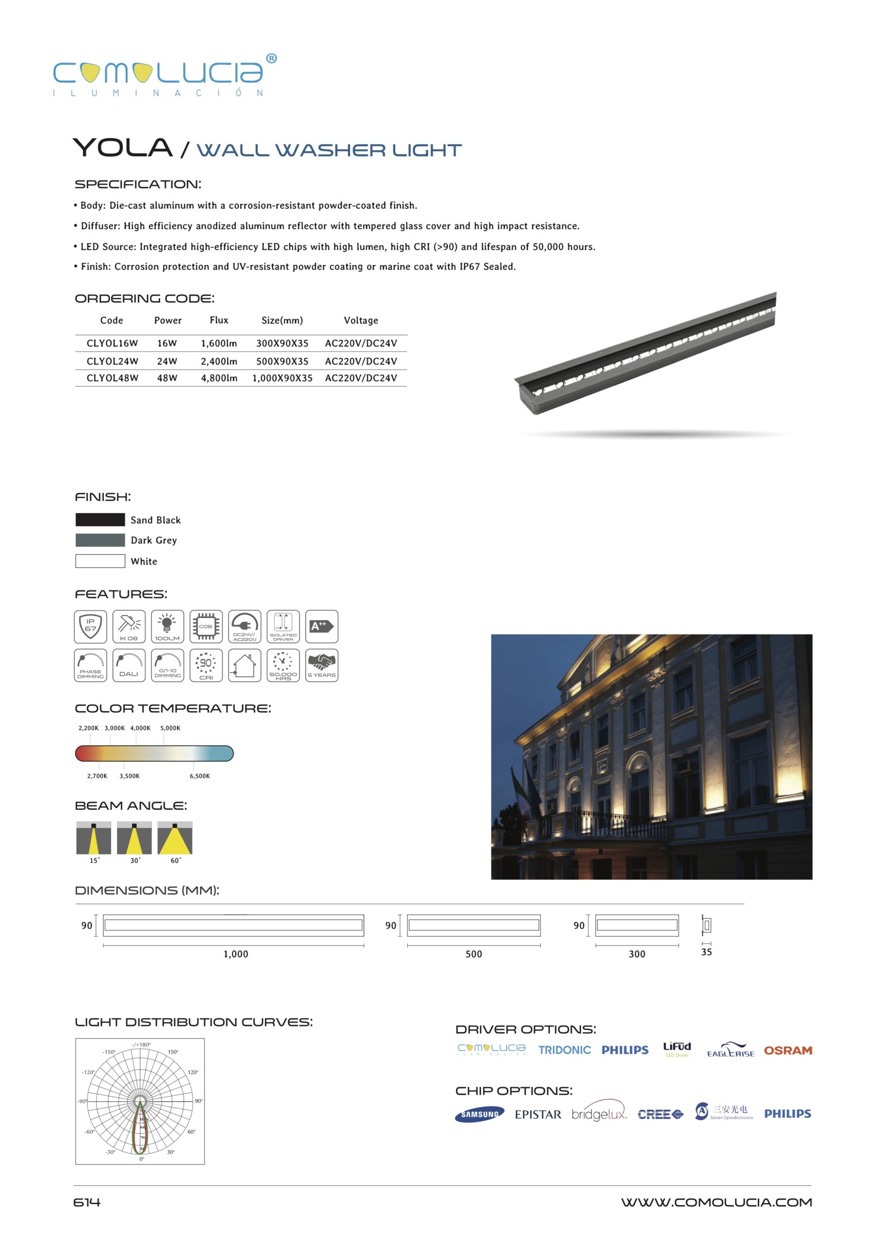- LED Source: Integrated high-efficiency LED chips with high lumen, high CRI (>90) and lifespan of 50,000 hours.