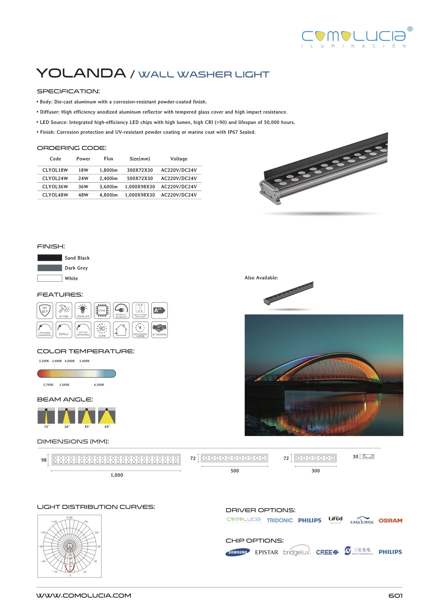 - LED Source: Integrated high-efficiency LED chips with high lumen, high CRI (>90) and lifespan of 50,000 hours.