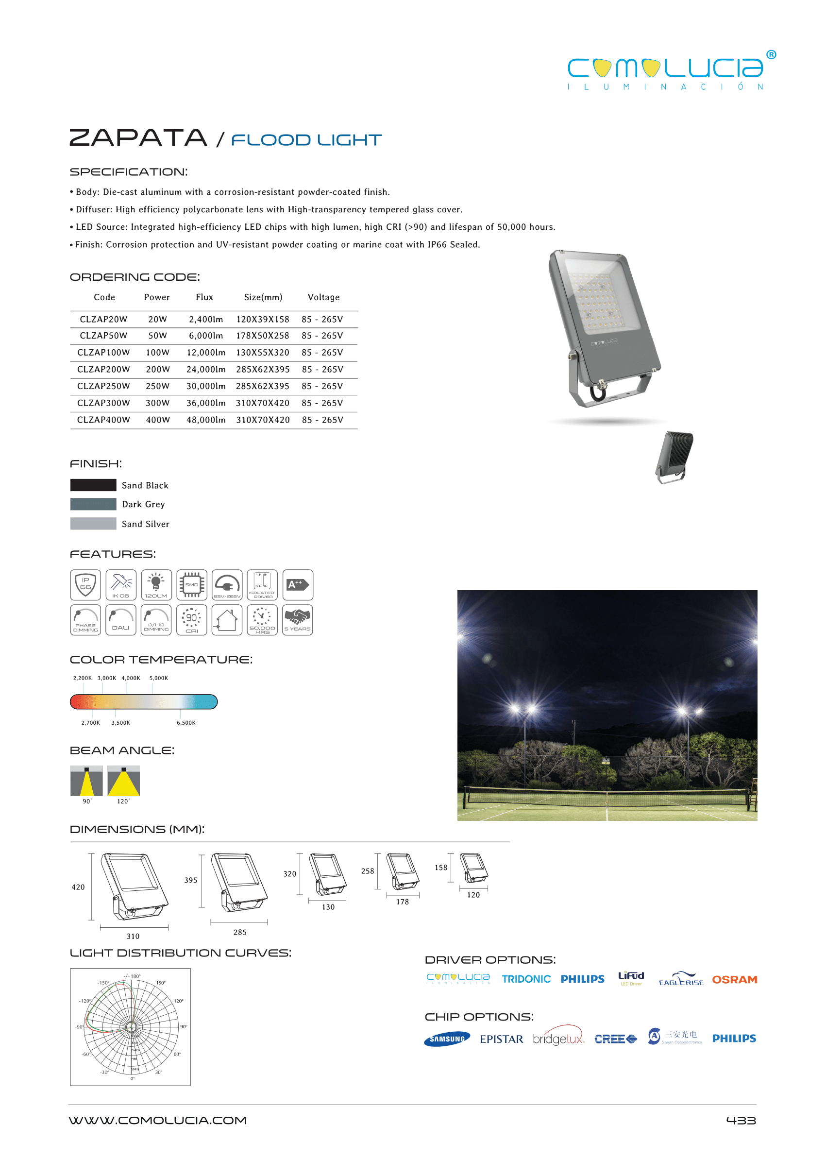 - LED Source: Integrated high-efficiency LED chips with high lumen, high CRI (>90) and lifespan of 50,000 hours.